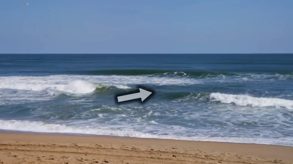 - Skum, tång eller bubblor: Se om skräp eller skum förs rakt ut från stranden i en smal linje.